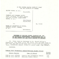 Case Data and Exhibits for Brown III, a relitigation of Brown v. Topeka Board of Education (1954) that corrected resegregation issues caused by open enrollment school choice in 1992. Document to the plaintiffs from the defense answering questions about Topeka schools that have changed names or have been used in different capacities or grade levels.