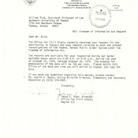A Letter from Director of the Office of Civil Rights of the Region VII Department of Health, Education, and Welfare Jesse L. High to Assistant Professor of Law at Washburn University of Topeka William Rich, October 1979.