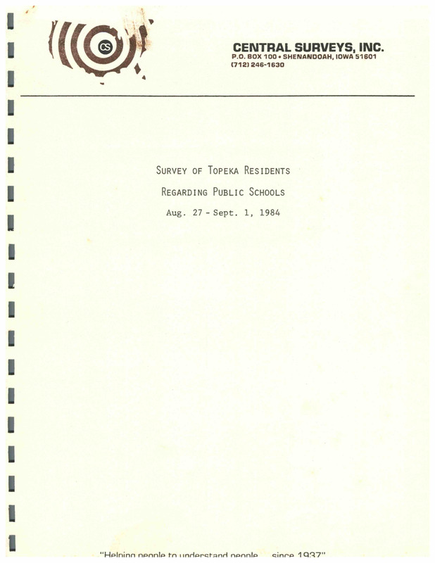 A Survey of Topeka Residents Regarding Public Schools Conducted by Central Surveys Inc. of Shenandoah, Iowa, August 27th to September 1st.