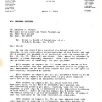 Letter from Lead Defense Attorney K. Gary Sebelius to ACLU Attorney Chris Hansen, March 5, 1985.