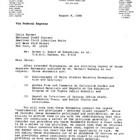 Letter from Lead Defense Attorney K. Gary Sebelius to ACLU Attorney Chris Hansen, August 6, 1986.