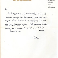 Handwritten letter from ACLU Attorney Chris Hansen asking William Lamson about updates for a report about boundary changes for junior high schools in Topeka dating back to 1941 when the state supreme court ordered the schools to be integrated.