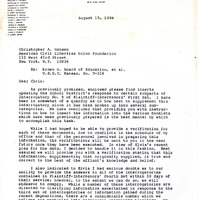 Letter from Lead Defense Attorney K. Gary Sebelius to ACLU Attorney Chris Hansen, August 15, 1984.