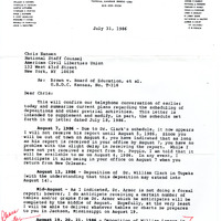 Letter from Lead Defense Attorney K. Gary Sebelius to ACLU Attorney Chris Hansen, July 31, 1986.