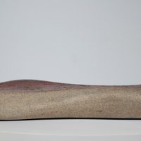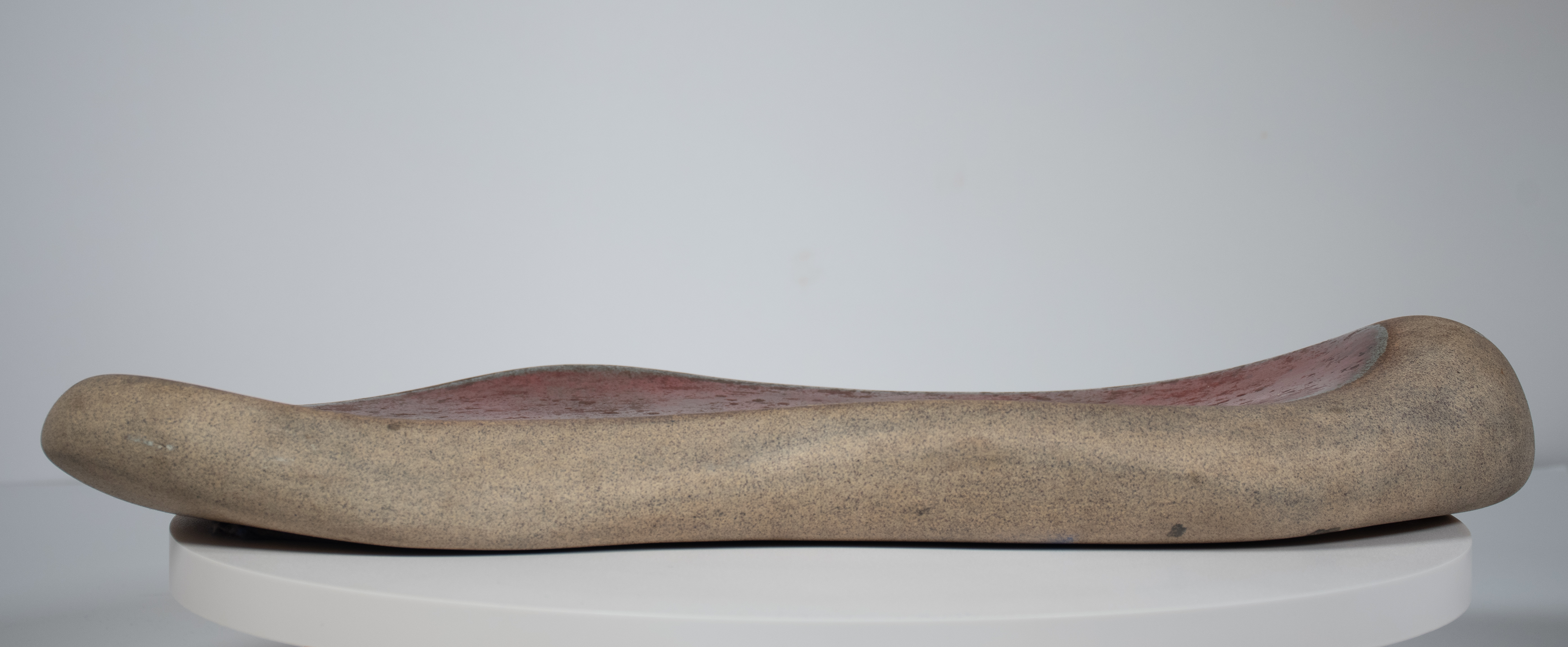 This large, oblong ceramic plate created by Carroll Harris Simms has a red glaze. This piece is among those that Professor Simms chose to feature in the 1976 book he co-authored with Dr. Biggers and John Edward Weems, Black Art in Houston: The Texas Southern Experience.