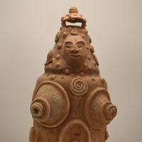 This is a maquette created by an unknown Texas Southern University art student. This maquette displays a stout figure with various swirls on the body. The swirls are a required component for the maquette project, as Carroll Harris Simms pushed his students to richly embellish their works.