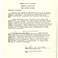 Ms. Weakley was born in the Farish Street District in the 1920’s after her parents moved there following World War I. She talks about her childhood in the district and recounts what life was like for people there. She discusses some of the businesses, including doctors and lawyers. She also talks about her education at the Smith Robertson School.