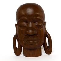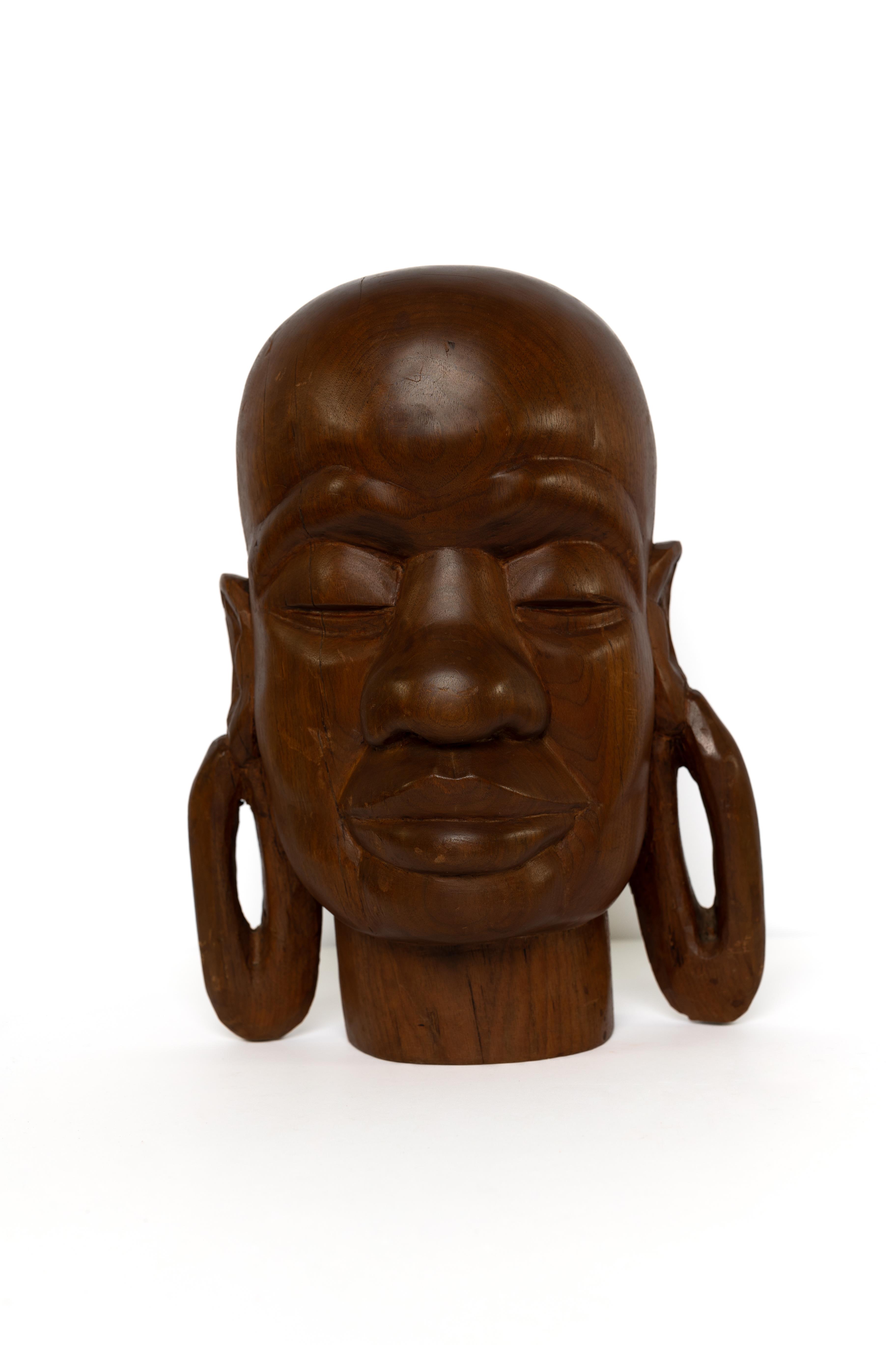 Houston E. Chandler was a sculptor, printmaker, painter, and teacher from Saint Louis, MO. Head is a wooden bust of an African person with distinct features. Chandler crafts a voluminous mouth, nose, and forehead and elongated ears that enhances its indegneity.