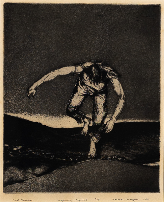 Norma Morgan, raised in New Haven, Connecticut, studied with Hans Hofmann before shifting from abstraction to the textured landscapes that defined her career. Her Tired Traveler (1962) and Ghost Light (1963) earned recognition at the Annuals and later carried her to the world stage at the First World Festival of Negro Arts in Dakar, Senegal, in 1966.