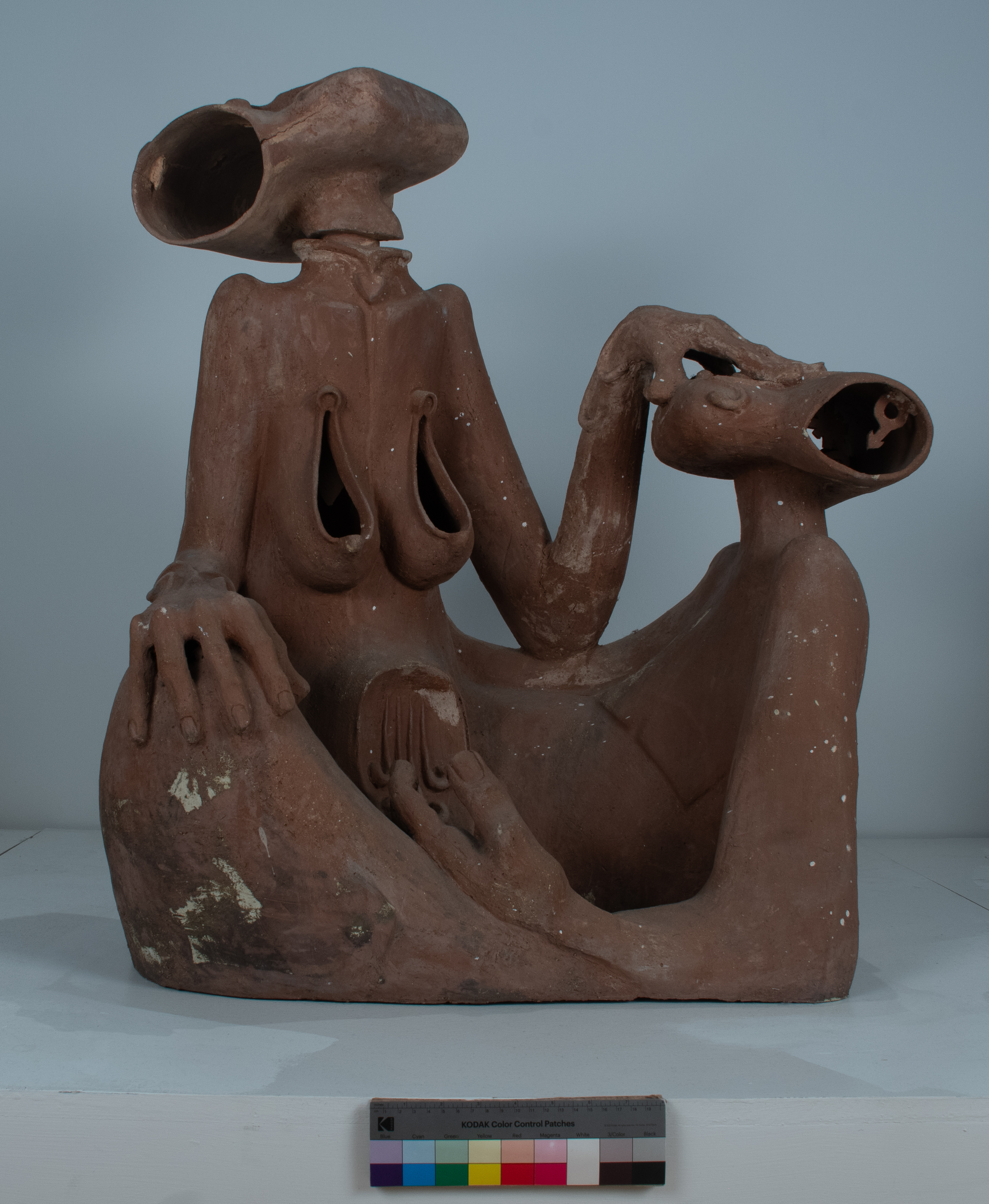 TSU Student TerracottasUnder the instruction of Professor Carroll Harris Simms, Texas Southern University art students created terracotta sculptures inspired by his travels to West Africa. Themes such as the mother-child relationship, animals, and shrines are frequently seen in this collection featuring their works, along with signature embellishments like swirls.