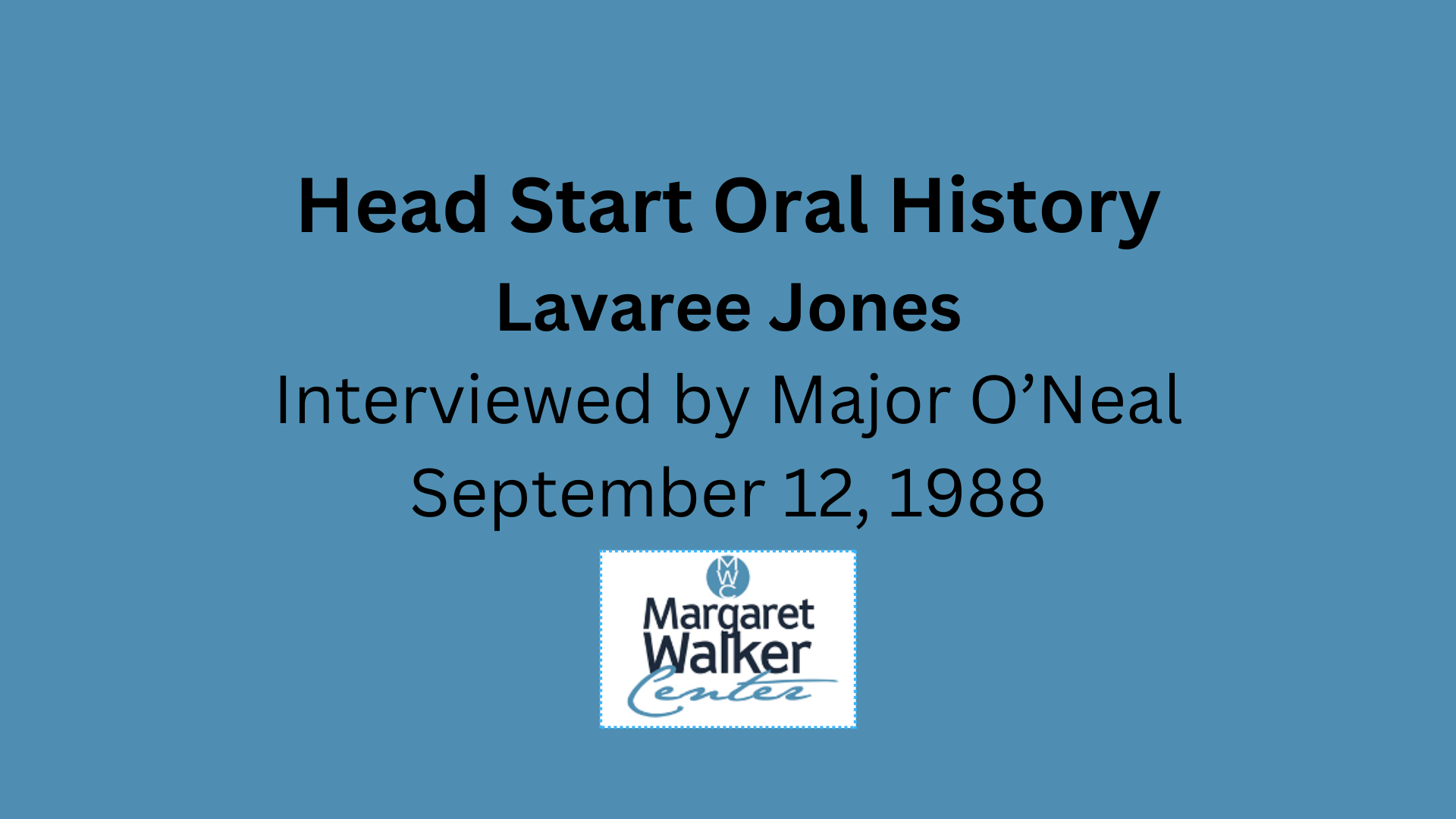 Lavaree Jones interviewed by Major O'Neal; both are students in Dr. Alferdteen Harrison’s Oral History class at Jackson State University. He asks her 3 questions about the origins of the Head Start program in Mississippi and the role Head Start plays in the Black community.