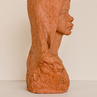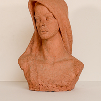 William Artis was a sculptor from Washington, NC. Young Mother is a ceramic sculpture of a hooded woman looking off into the distance away from the viewer.