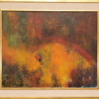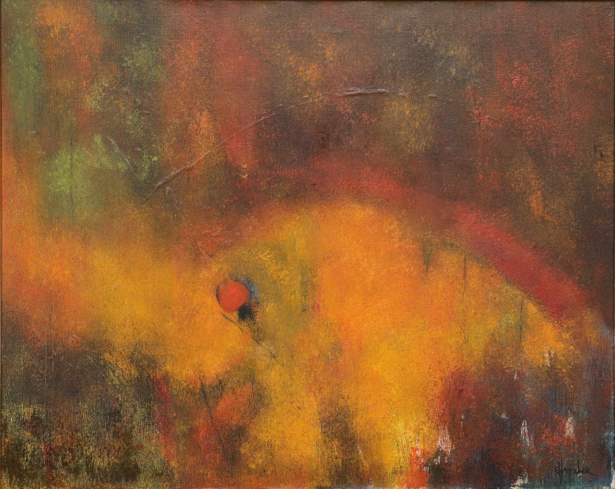 Gilbert H. Hatcher was a painter from Augusta, GA. Gold Paddy is a nonfigurative abstraction consisting of muted yellows, greens, reds, and black.