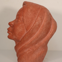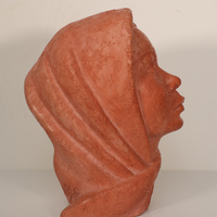 William Artis was a sculptor from Washington, NC. We Have Seen His Face is a ceramic bust of a hooded woman with her head raised. The subject holds a reverent expression as she looks toward God.