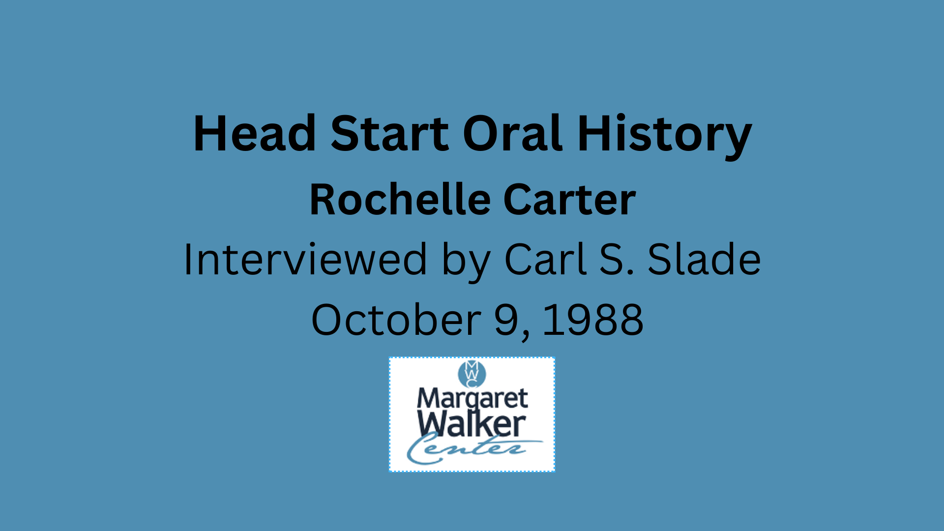 Rochelle Carter interviewed by Carl S. Slade, Audio and Transcript.