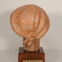 William Artis was a sculptor from Washington, NC. Woman with Kerchief is a terracotta sculpture of a Black woman with her head covered by a tied kerchief.