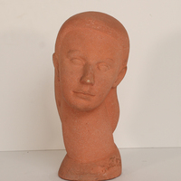 William Artis was a sculptor from Washington, DC. A Terra-Cotta Head is a bust of a woman with a solemn expression. The bust has a slight head tilt with an elongated neck.