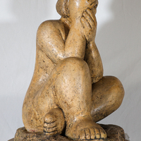 Hayward Oubre was a multimedia artist and educator from New Orleans, LA. In a Pensive Mood is a sculpture of a woman sitting in a worried position. Her hands cover her mouth and right eye as she sits with her left leg tucked under her right.